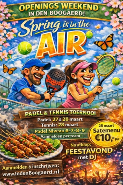 Het tennisseizoen gaat weer van start en dat vieren we met een gezellig en sportief openingstoernooi bij Tennisvereniging In den Boogaerd op: